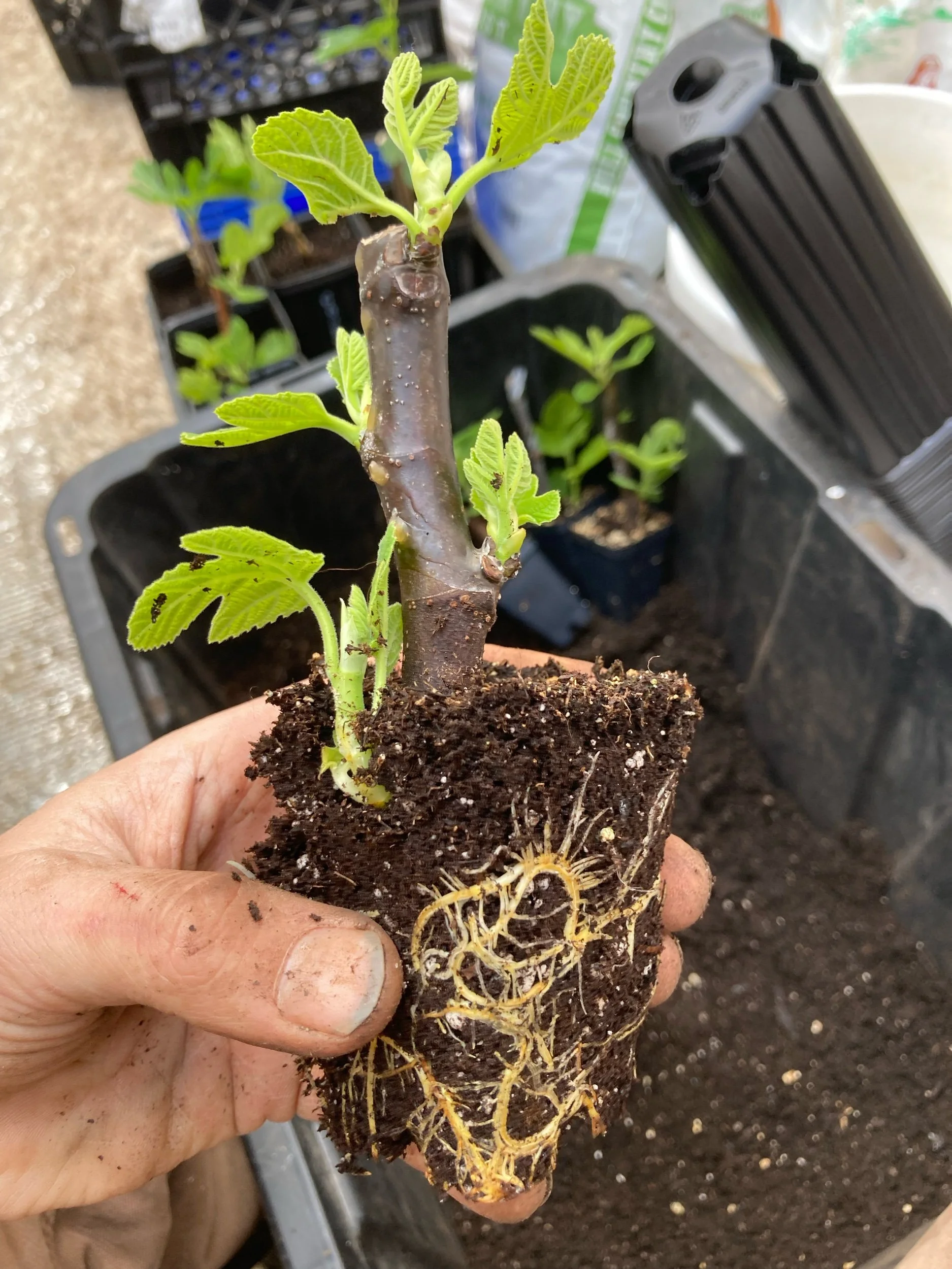 Our fig trees are grown organically and tended to like kings! They are fed compost teas, organic kelp, rock dusts, and lots of other great things to ensure optimum health of our trees. We then wait patiently until the plants are fully dormant for the absolute best cuttings! To root there are many successful methods, some of the most popular favorites are : The fig pop method, the mini pop (new smaller version), in sand beds, or heat pads and pots. Our go to method is 2” press fit pots, filled with promix FPX “soil”, on heated sand beds set to 72 degrees, in full sun, in the early spring. We do not spray ANY pesticides, and take pride offering the finest cuttings we possibly can.